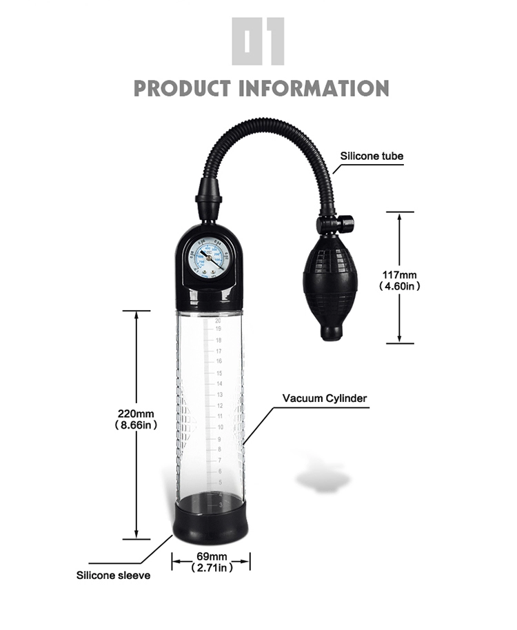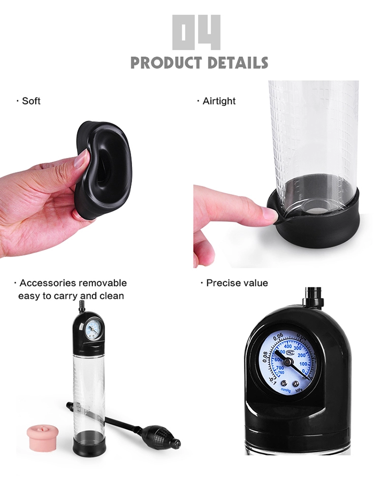 The penis pump with a measuring gauge on the chamber provides a visual representation of progress, allowing users to track their growth step by step. As pressure is applied and blood flows into the penis, the gauge displays the corresponding increase in size, offering real-time feedback and motivation. This feature adds an extra level of engagement and satisfaction to the pumping experience, empowering users to monitor their results and adjust their routine as needed to achieve their desired goals.